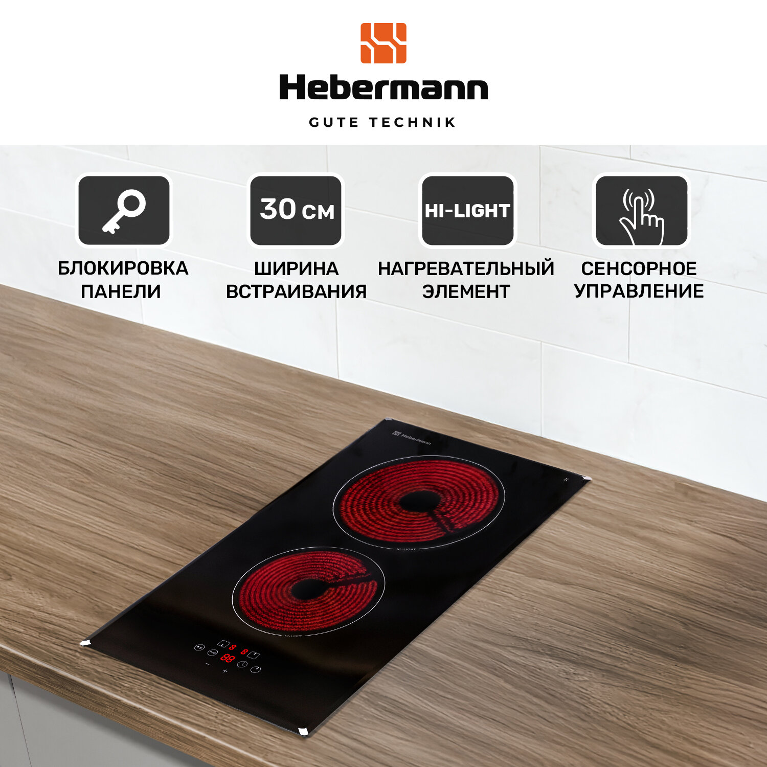 Отзывы на Электрическая варочная поверхность, встраиваемая, Hebermann HBKC 3020.1 BL; двухконфорочная, сенсорное управление