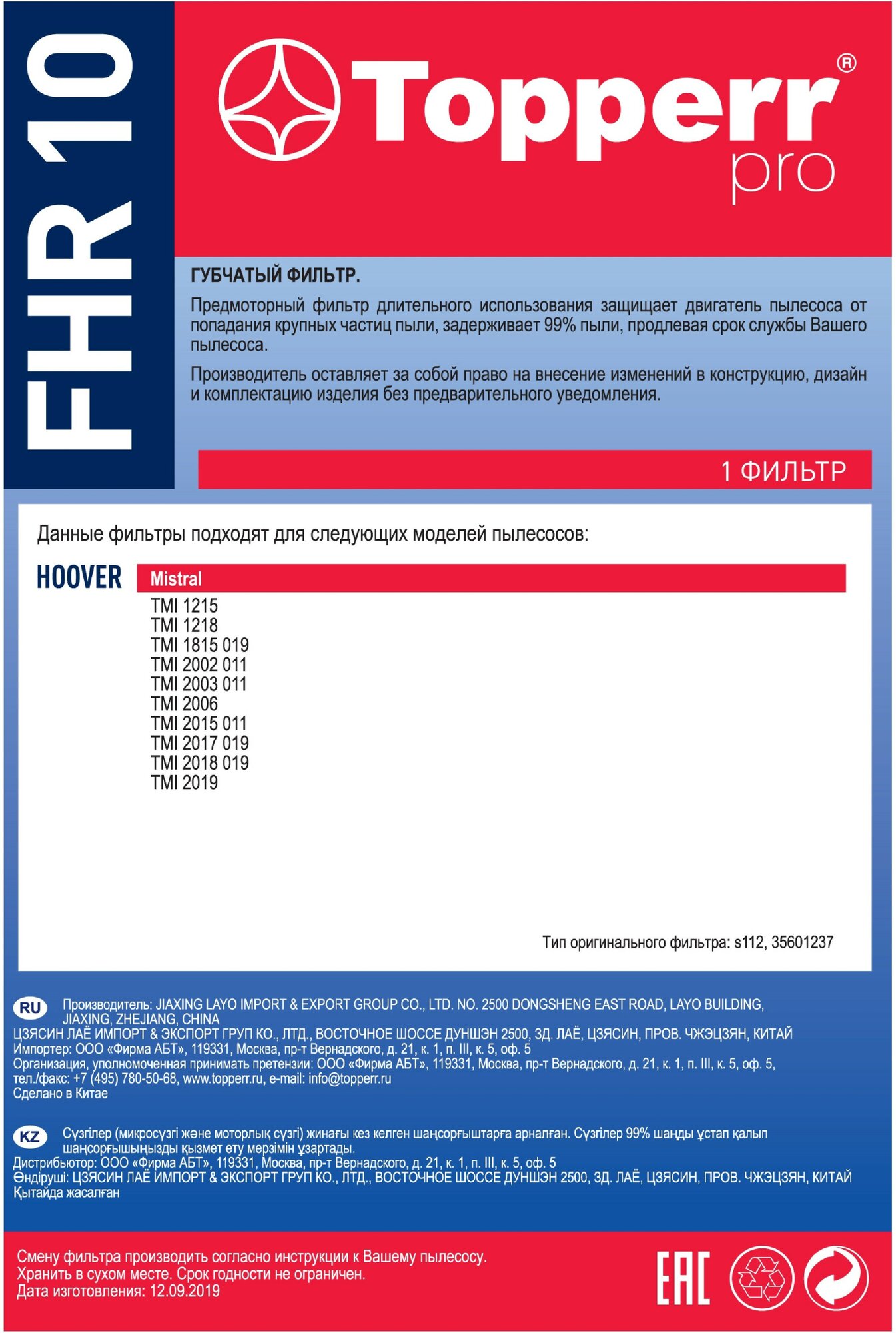 Topperr Губчатый фильтр для пылесосов HOOVER, 1 шт, FHR 10 информация: