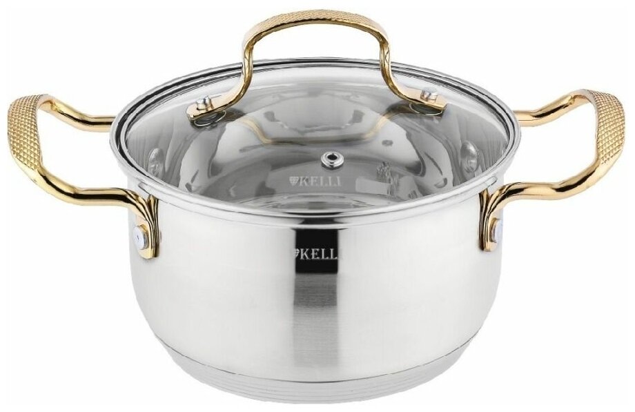 Кастрюля Kelli KL-4708-16 обьем 2 л нержавейка золото ручки информация: