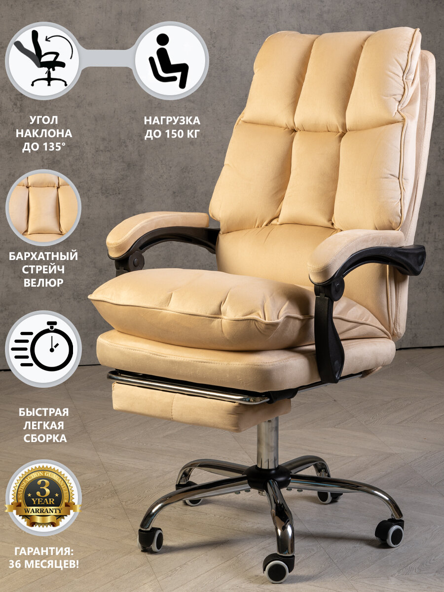 Отзывы на Мягкое компьютерное кресло для дома и офиса, с подставкой для ног, из велюра, цвет бежевый