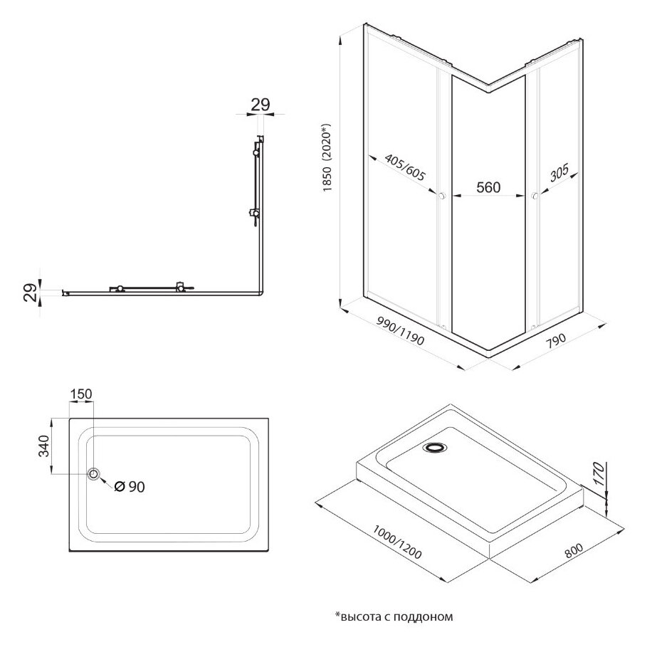 | Монтаж ограждений | на поддон / напольный / пристенный / на пол или на поддон |