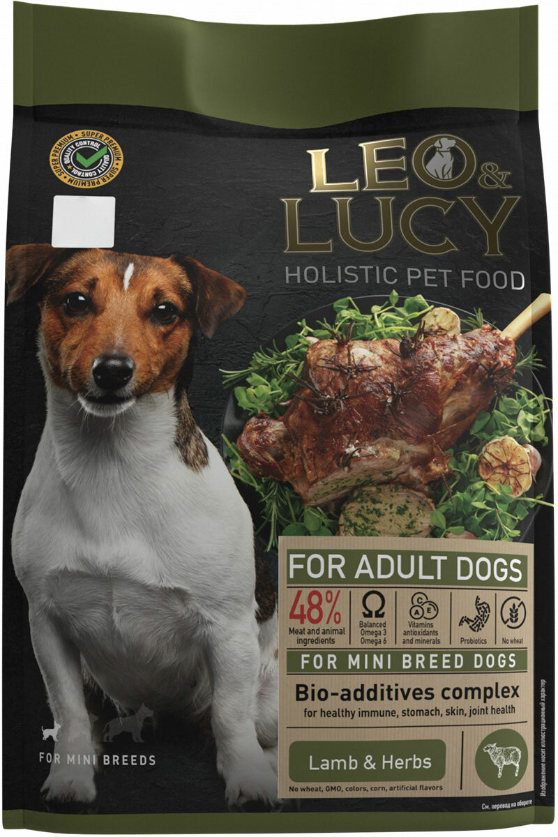 Корм сухой для собак мелких пород LEO&LUCY, с ягненком, травами и биодобавками, 1 шт.