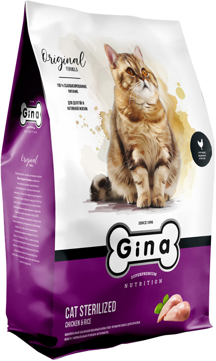 10 цен на GINA ADULT CAT STERILIZED CHICKEN & RICE для взрослых кастрированных котов и стерилизованных кошек с курицей и рисом 01739 (1 кг х 6 шт)