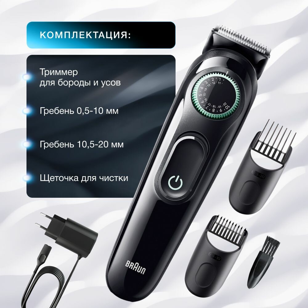 10 цен на Электрический триммер для бороды и усов Braun BT3411, 2 насадки, 40 установок длины, светодиодный индикатор, черный
