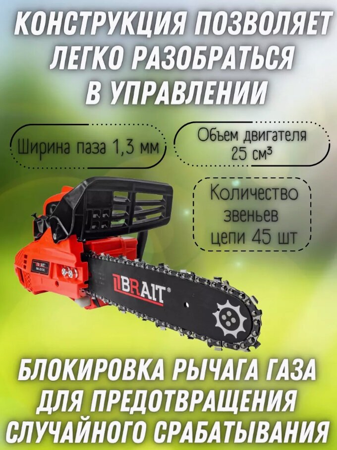 10 цен на Пила цепная бензиновая BRAIT BR-2512С 1 л. с, легкий запуск, шина 30 см