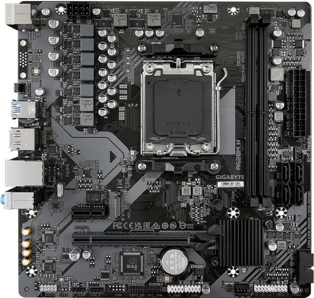 Материнская плата Gigabyte A620M H (rev. 1.0) (mATX, A620, 2хDDR5, 1хM.2, 2хPCIe, 1хHDMI, 3xUSB)