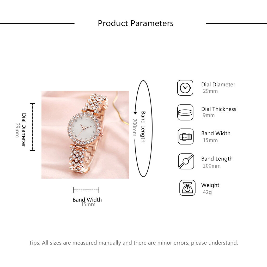 Часы женские с браслетом, цепочкой, серьгами и кольцом / часы женские кварцевые 497 ₽