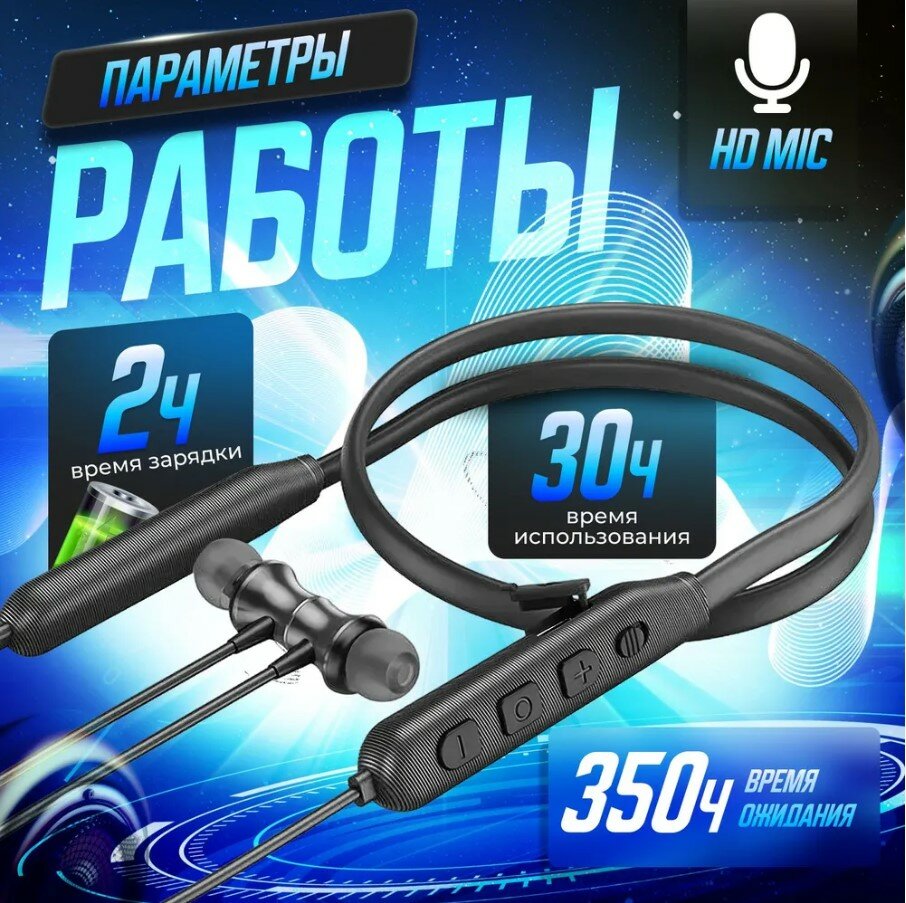 Наушники беспроводные Hoco ES64 с шейным ободком, спортивные, с микрофоном, для бега, для прогулок, черные информация: