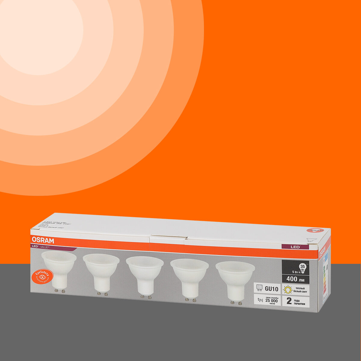 Лампа светодиодная GU10 OSRAM LED Value PAR16, 400лм, 5 Вт, 3000К (теплый белый свет), 5 шт. информация: