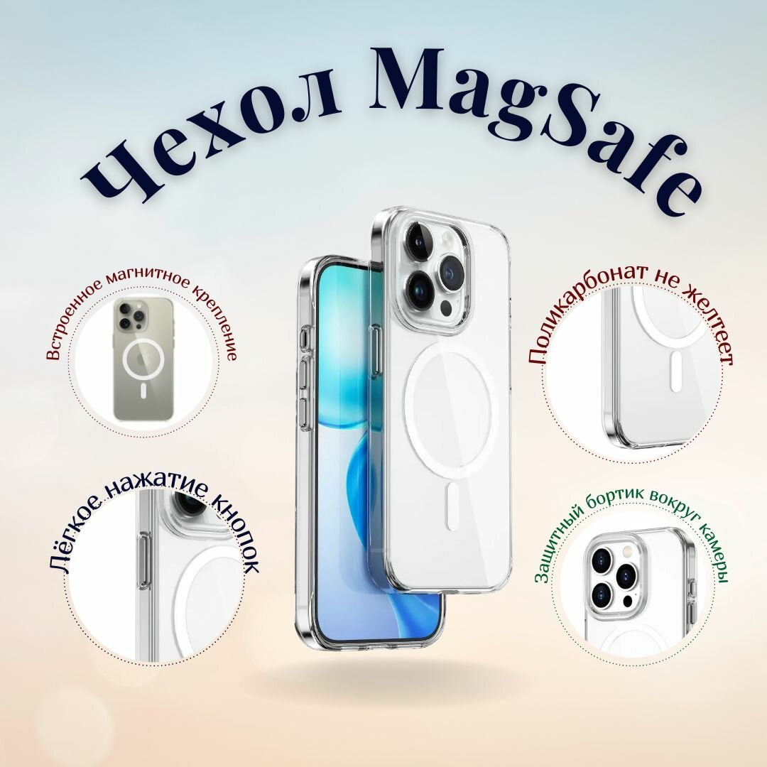 | Особенности | MagSafe / поддержка беспроводной зарядки / ударопрочный / Выступы для защиты камеры и экрана / Магнит для беспроводной зарядки |