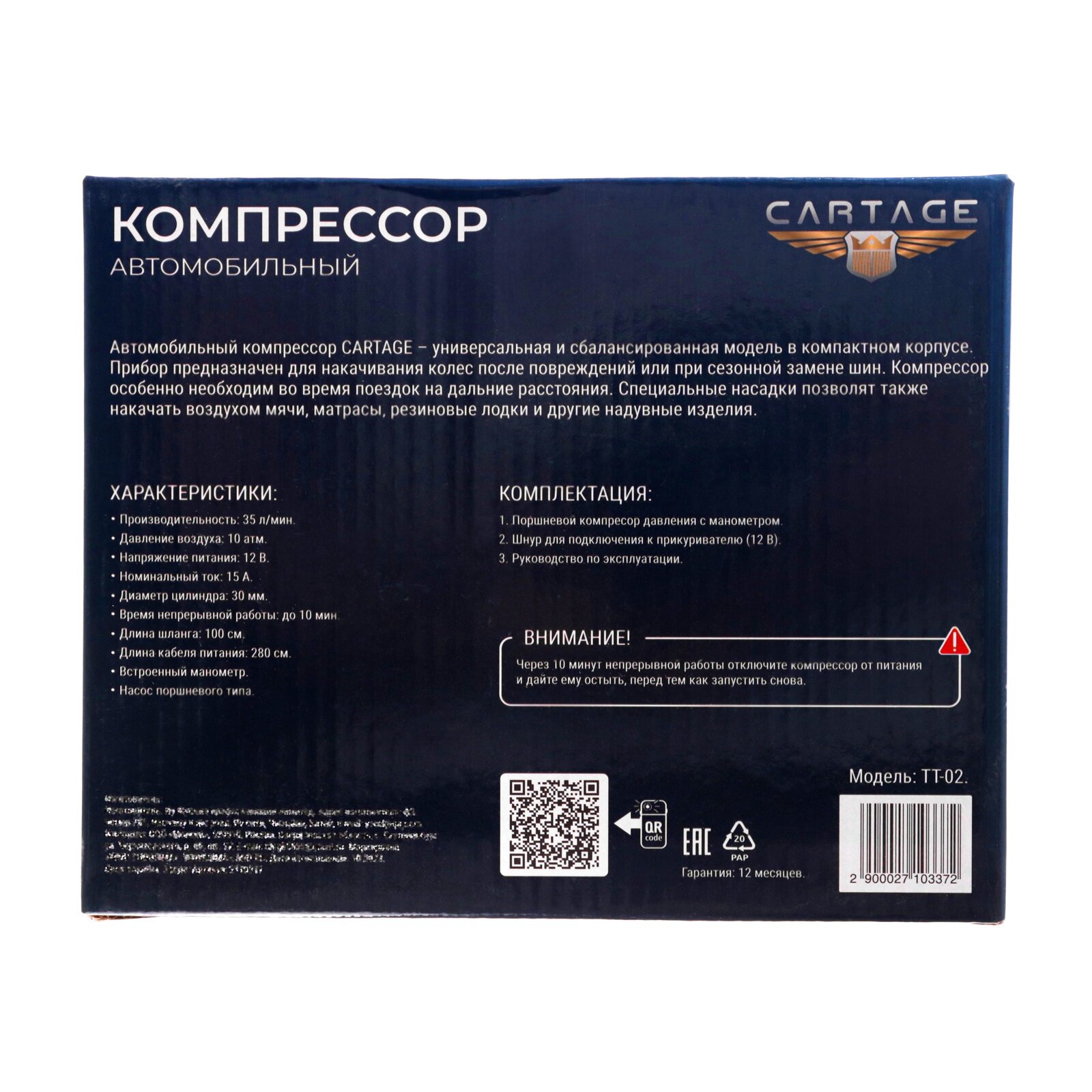 Cartage Компрессор автомобильный CARTAGE, серия "Торнадо" 35 л/мин