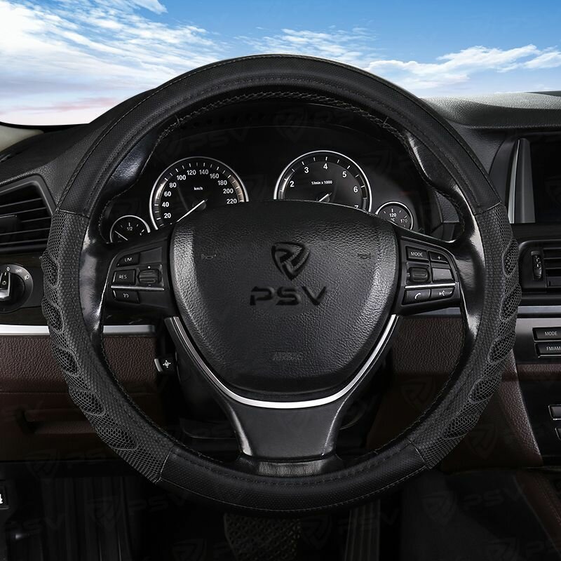 Оплетка на руль универсальная из экокожи «CARBON» М 37-39 см (чёрная, строчка чёрная) belais #21608