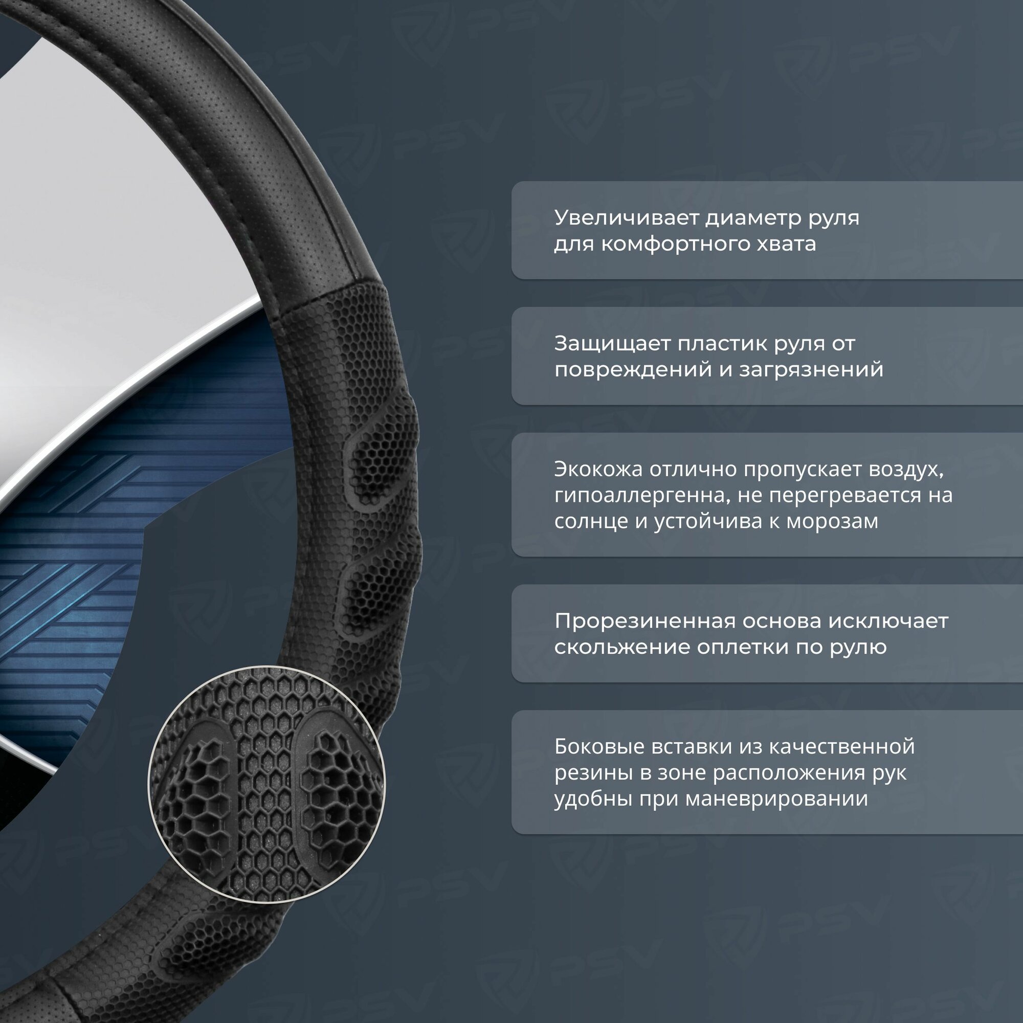 10 цен на Чехол на руль оплетка PSV PROTECT черный, размер L 39-41 см