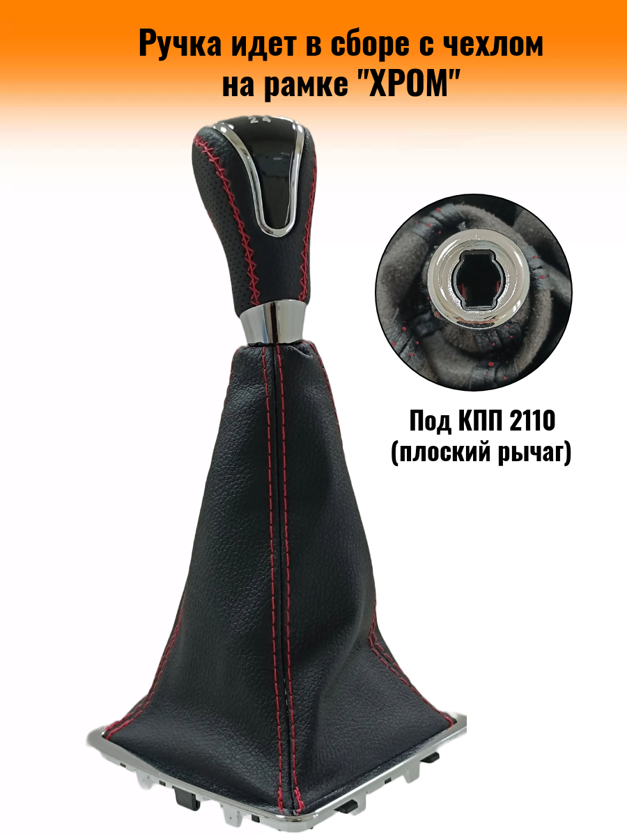 10 цен на Ручка КПП с чехлом в стиле Весты на ВАЗ-2170 Лада Приора 1 с ВАЗ-2110 кулисой, черный с красной строчкой "рамка хром"