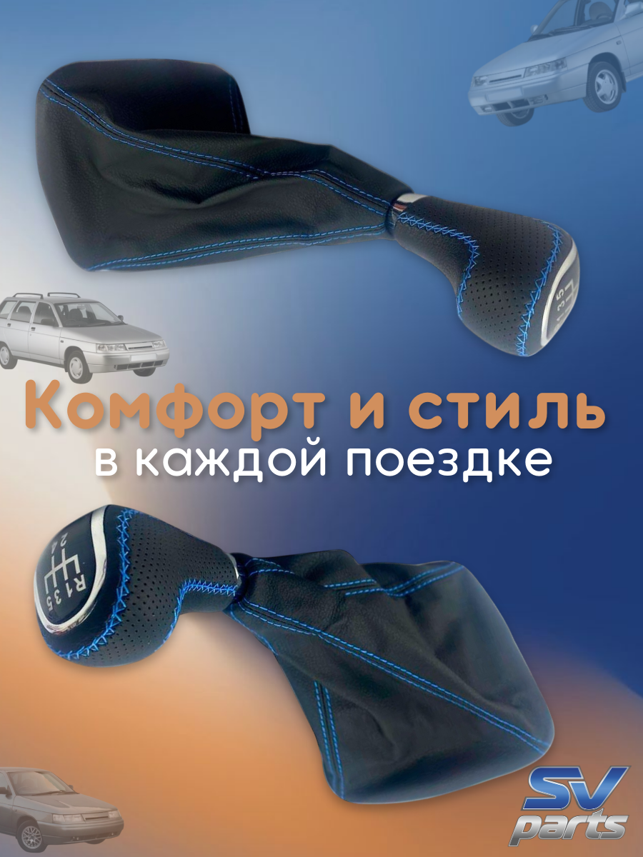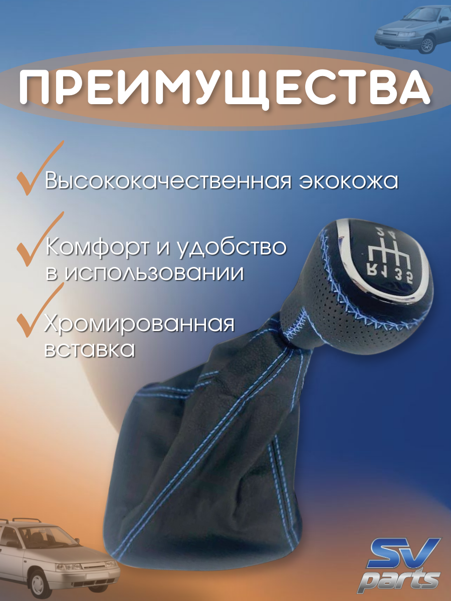 Ручка КПП 2110 - 2112 в стиле VESTA, синяя строчка, вставка ХРОМ информация: