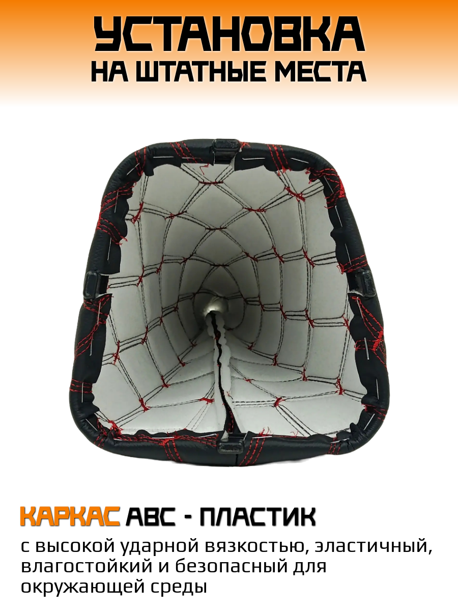 Кожух рычага КПП, экокожа с красной строчкой на ВАЗ 2113, 2114, 2115