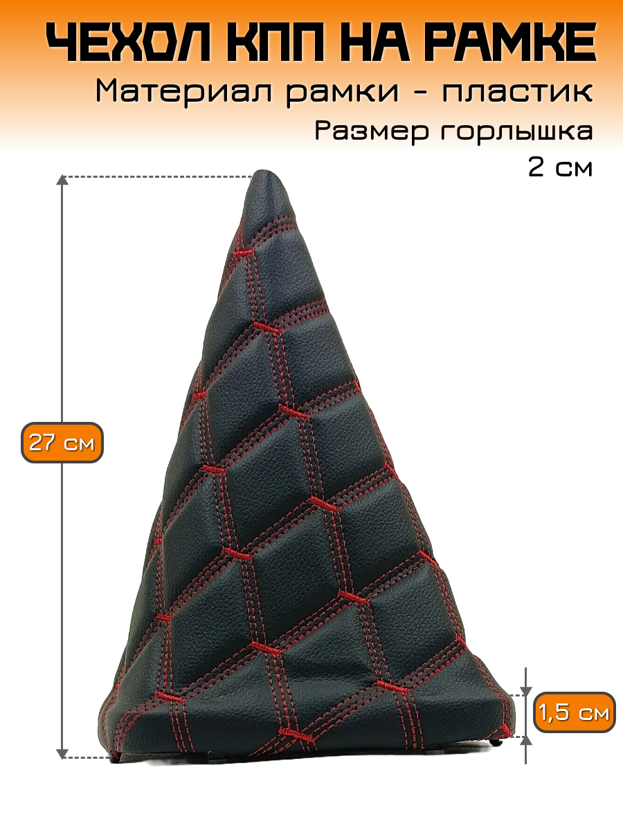 Чехол КПП на ВАЗ-2110, ВАЗ-2111, ВАЗ-2112 (Lada, Лада) - черный с тройной красной строчкой "ромб" информация: