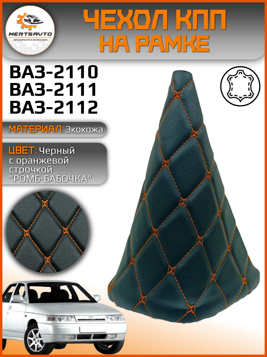 10 цен на Чехол КПП на ВАЗ-2110, ВАЗ-2111, ВАЗ-2112 (Lada, Лада) - черный с оранжевой строчкой "ромб-бабочка"