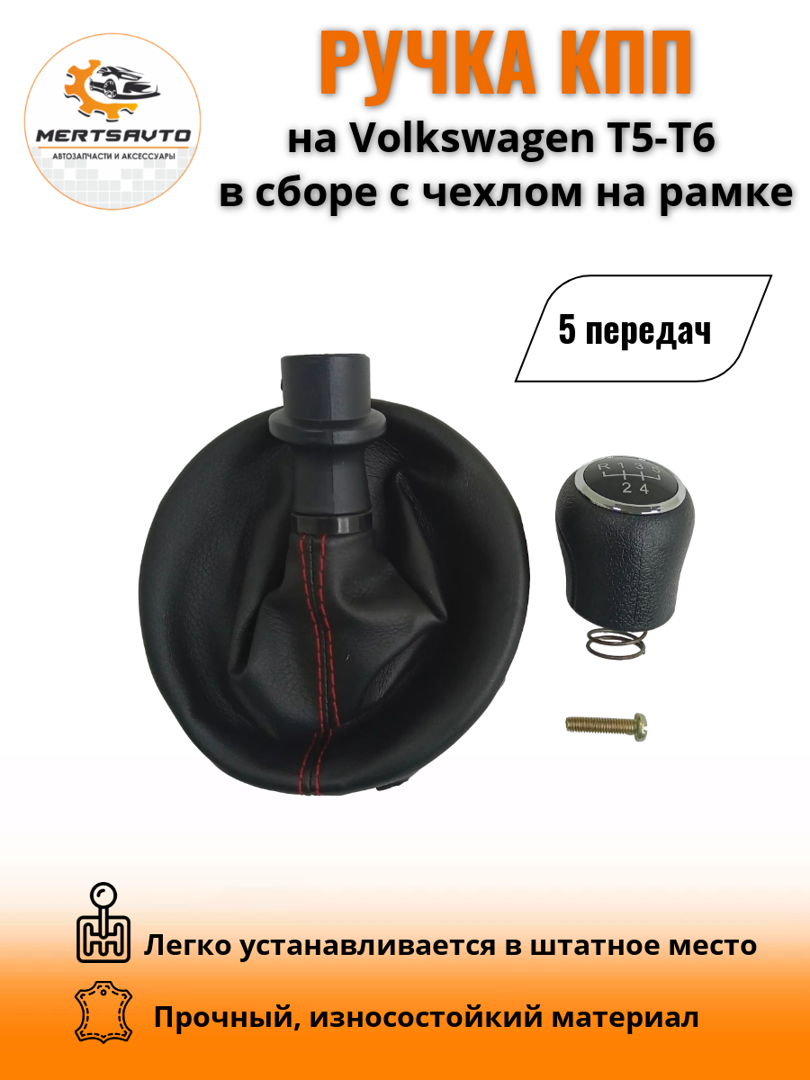 Отзывы на Ручка КПП с чехлом на Volkswagen Transporter T5/T6 (Фольксваген) 5 передач (черный с красной строчкой )