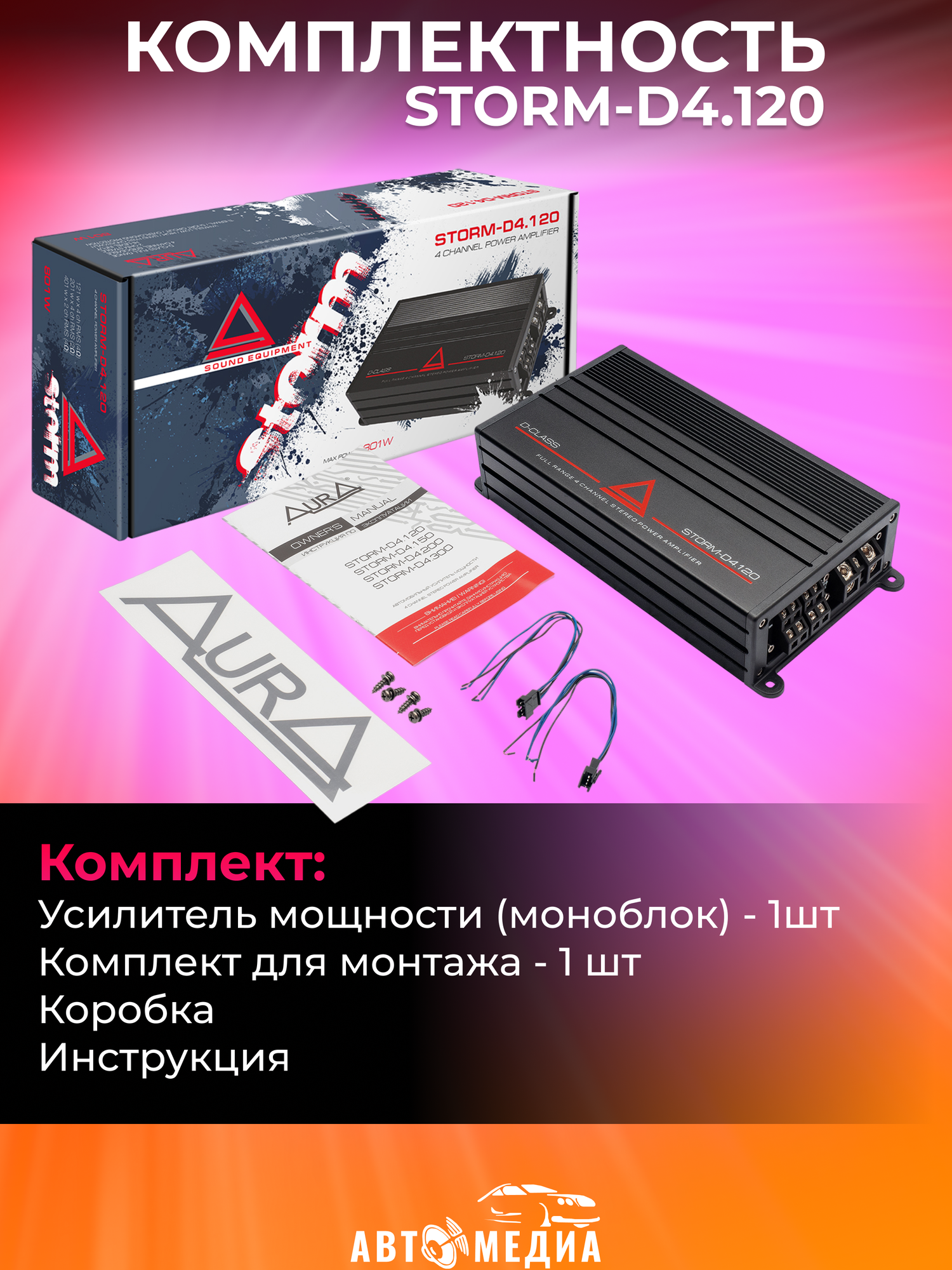 Автомобильный усилитель звука Aura STORM-D4.120 4-канальный D-класс