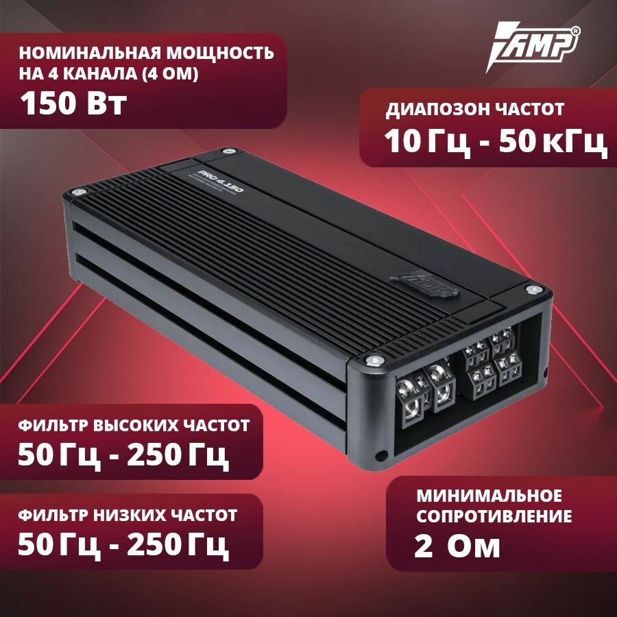 Усилитель AMP PRO 4.150, усилитель для авто, класс D, 4 канала, 1800W информация: