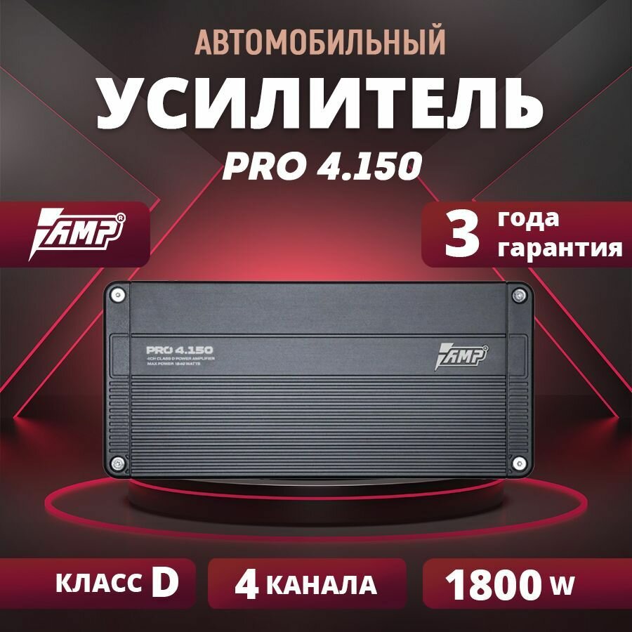 Отзывы на Усилитель AMP PRO 4.150, усилитель для авто, класс D, 4 канала, 1800W