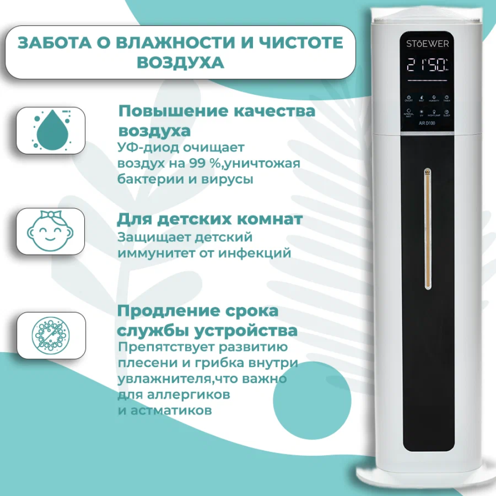 Ультразвуковой увлажнитель воздуха STOEWER Air D100 информация:
