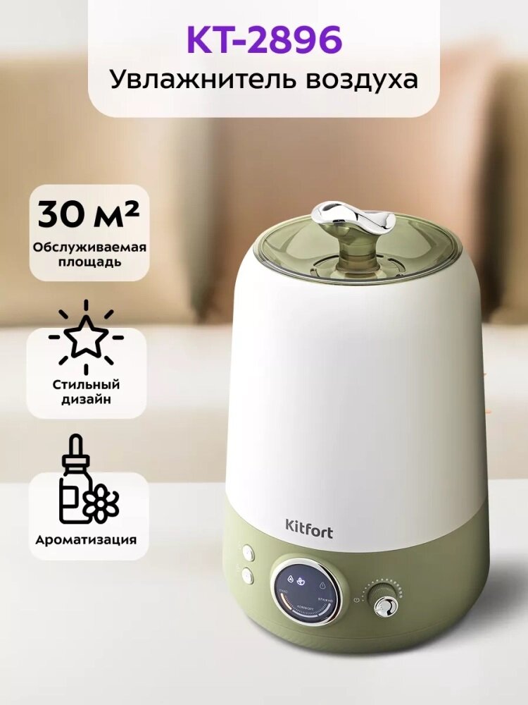 Отзывы на Увлажнитель воздуха КТ-2896, ультразвуковой, зеленый, 24Вт, 3,5л, площадь до 30м²