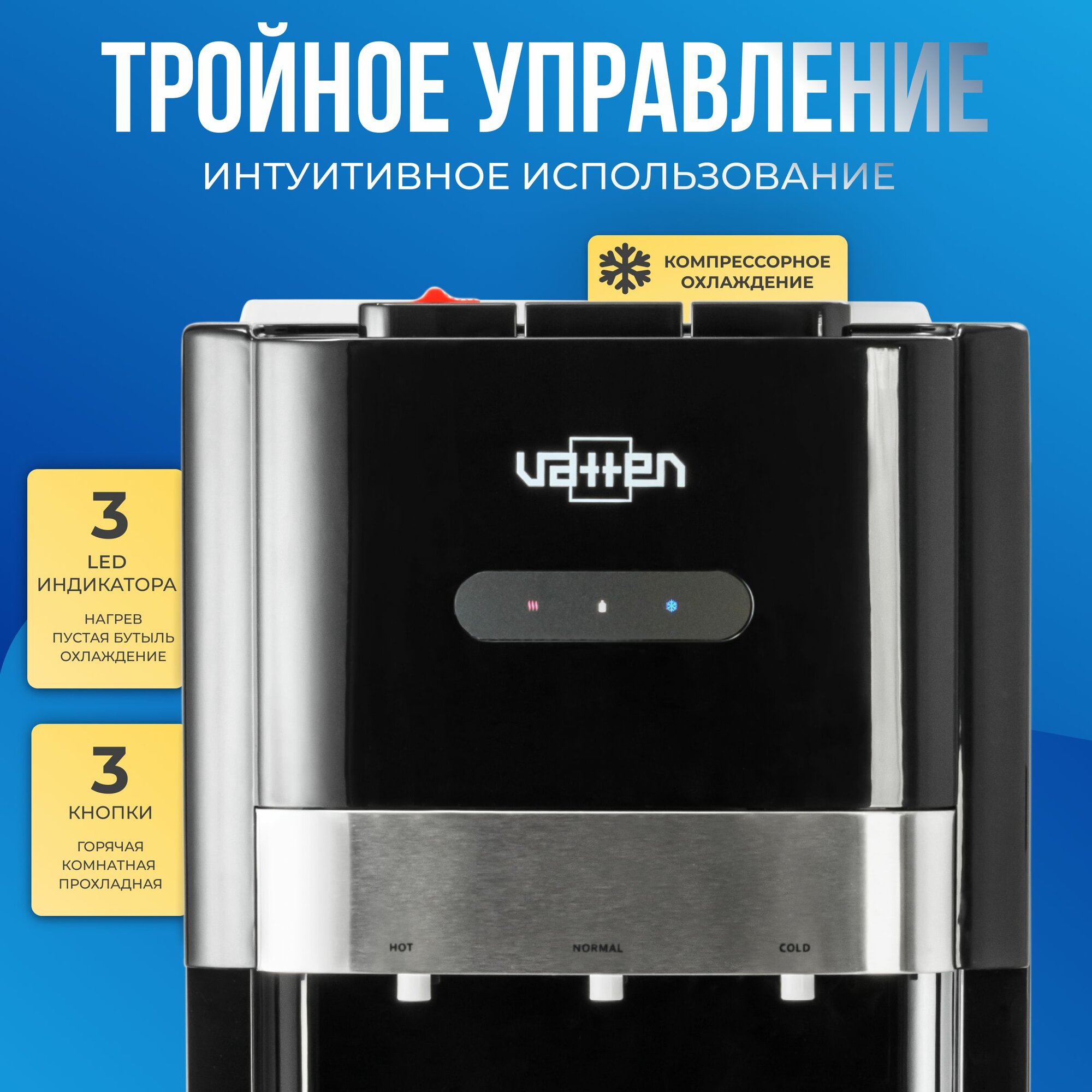 Отзывы на Компрессорный кулер для воды VATTEN L03NKV c УФ лампой, черный, напольный, компрессорное охлаждение