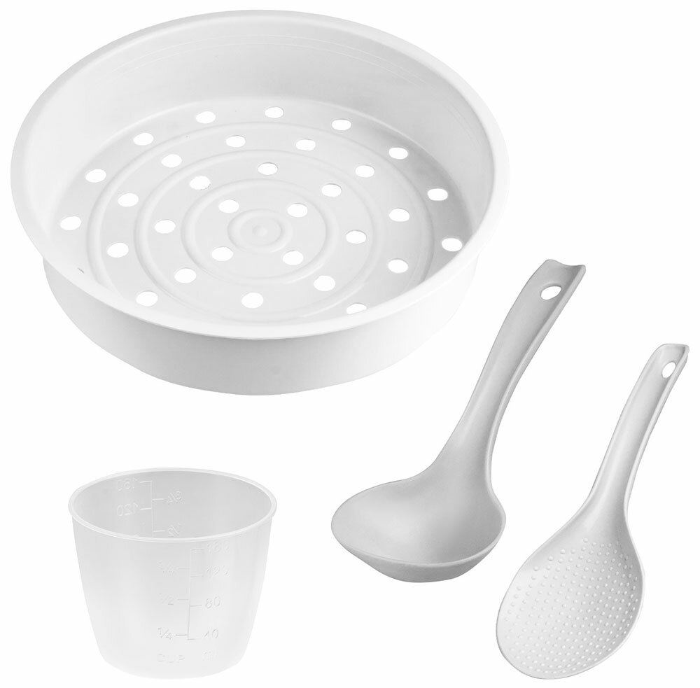 | Подробная комплектация | Съёмный контейнер для сбора конденсата, съемная чаша, емкость для приготовления на пару, ложка, мерный стакан, половник, шнур питания |