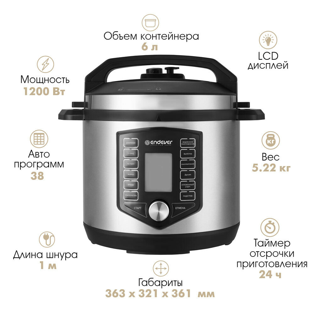 Мультиварка скороварка 6 литров ENDEVER VITA-150 / 14 автоматических программ + мастер-повар