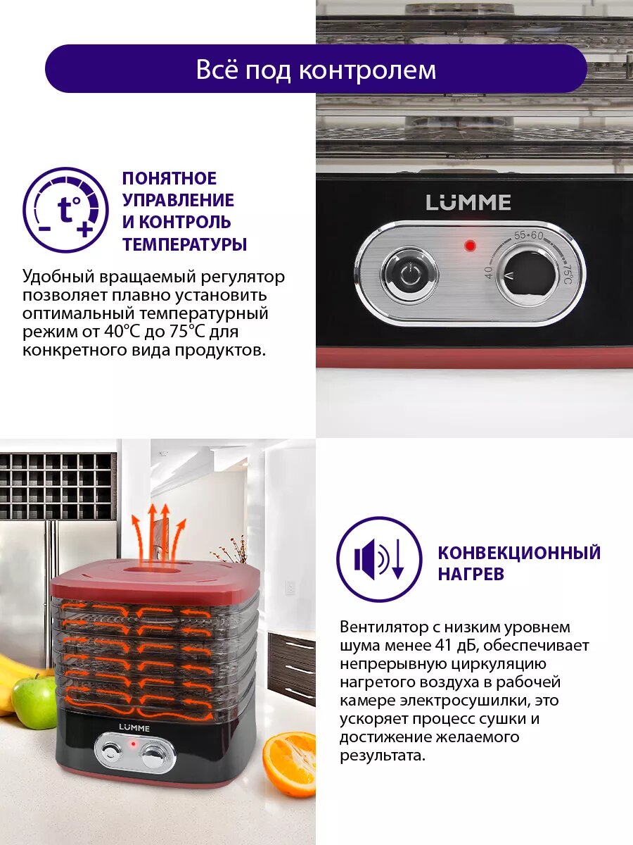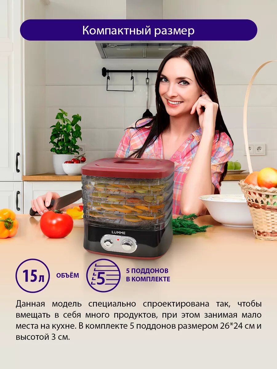 Отзывы на Дегидратор сушилка для овощей электросушилка LUMME LU-1853 5 поддонов черный/красный