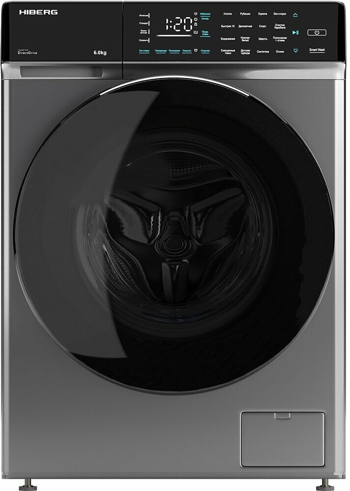 Стиральная машина HIBERG i-DDQ9 - 612, инверторная, 6 кг загрузка, 1200 об/мин, 16 программ, Smart wash, таймер, прямой привод