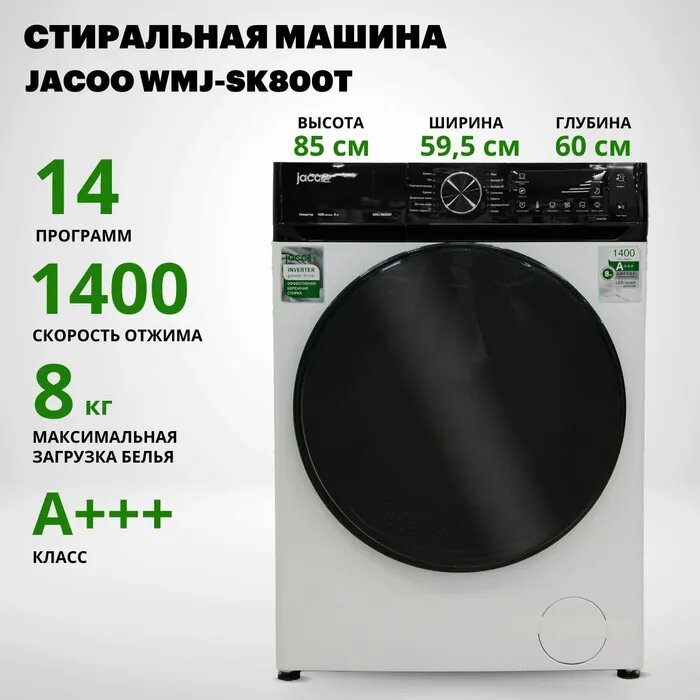 Стиральная машина JACOO WMJ-SK800T, 1400 об/мин, загрузка 8 кг, класс А+++, белый информация: