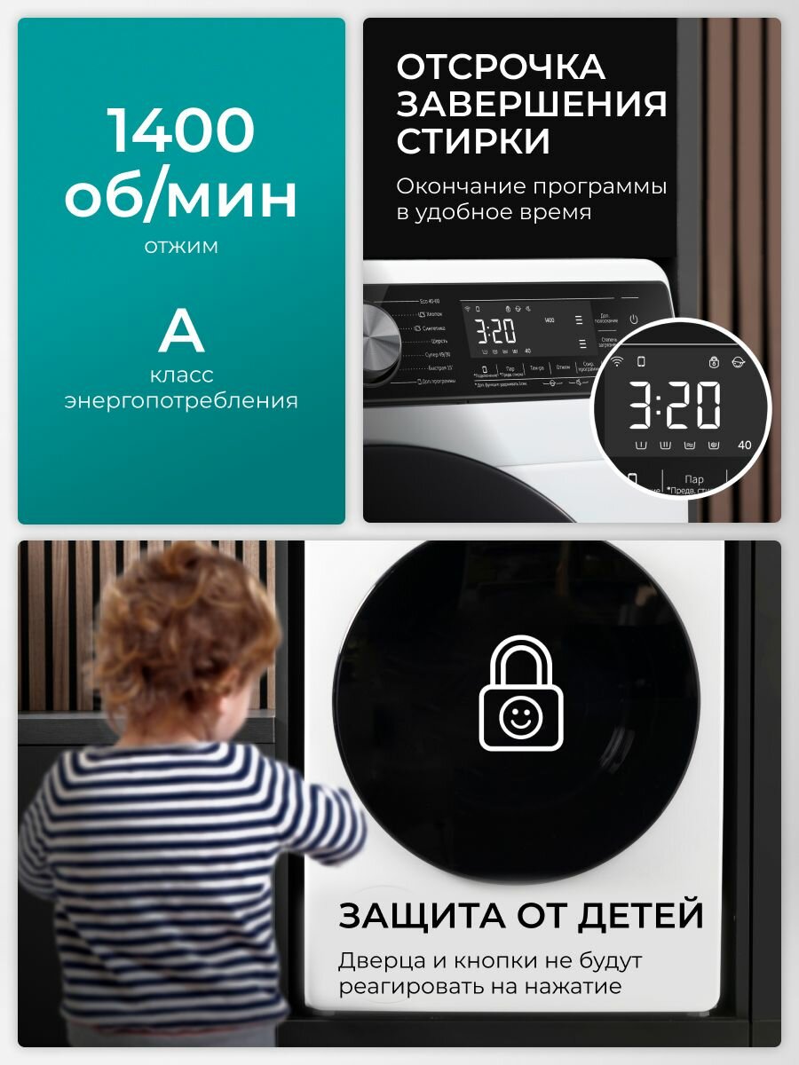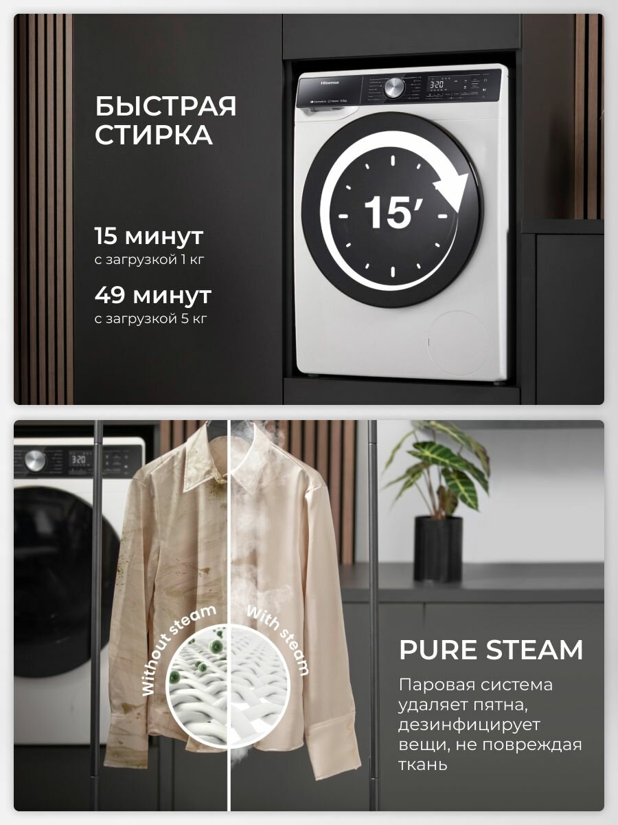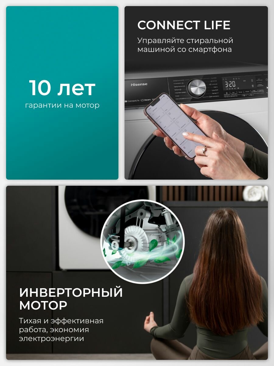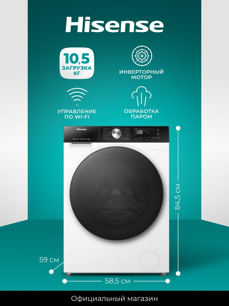 Стиральная машина Hisense WF5S1043BW, загрузка 10.5 кг, управление по Wi-Fi, инверторный мотор, функция пара информация: