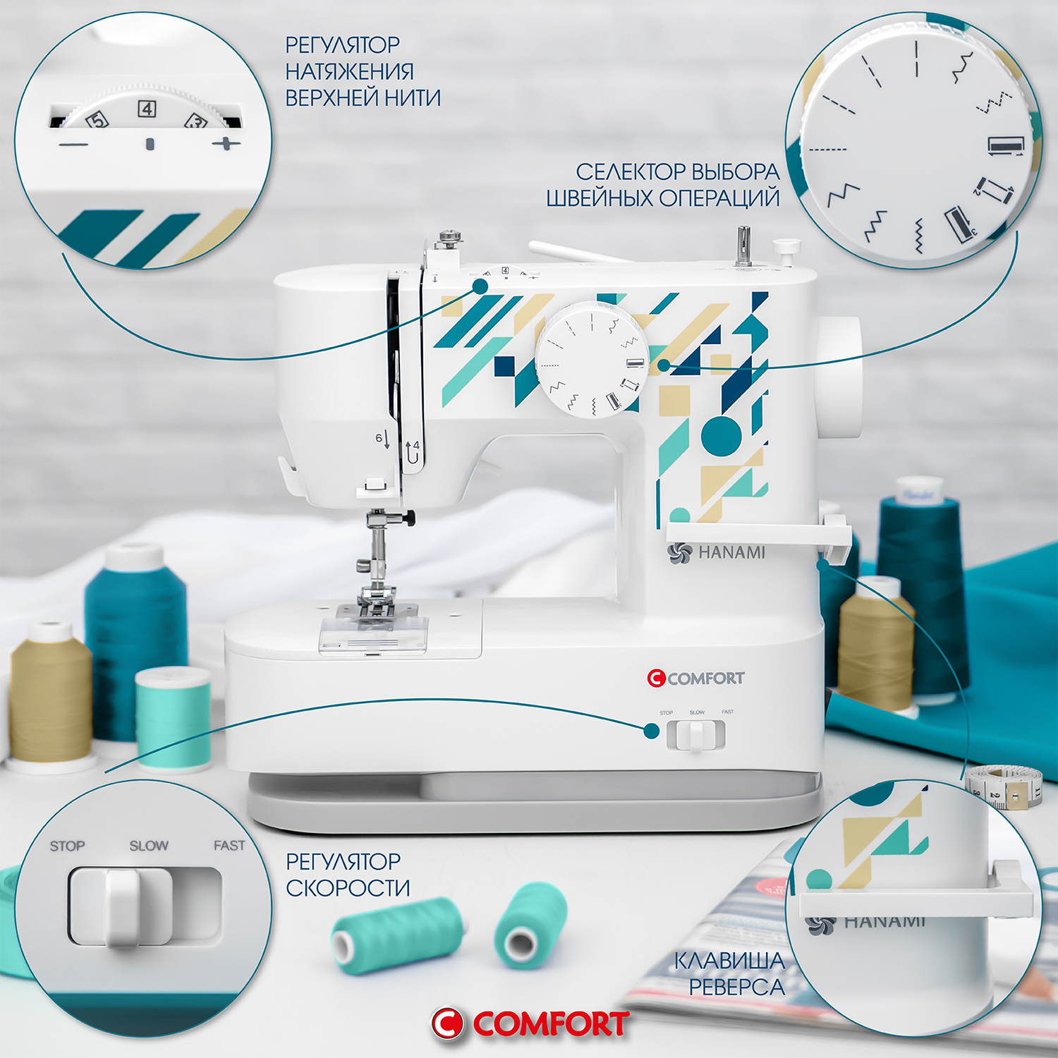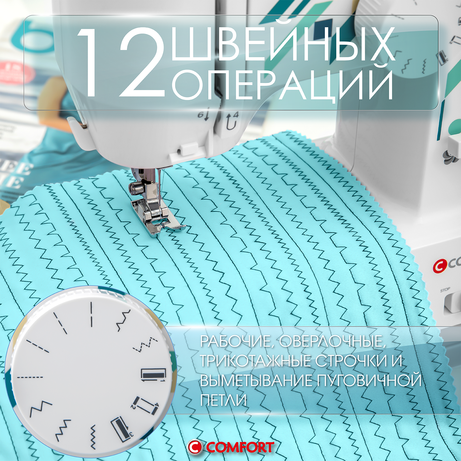 10 цен на Швейная машина Comfort 23, 12 операций, петля полуавтомат, компактный размер.