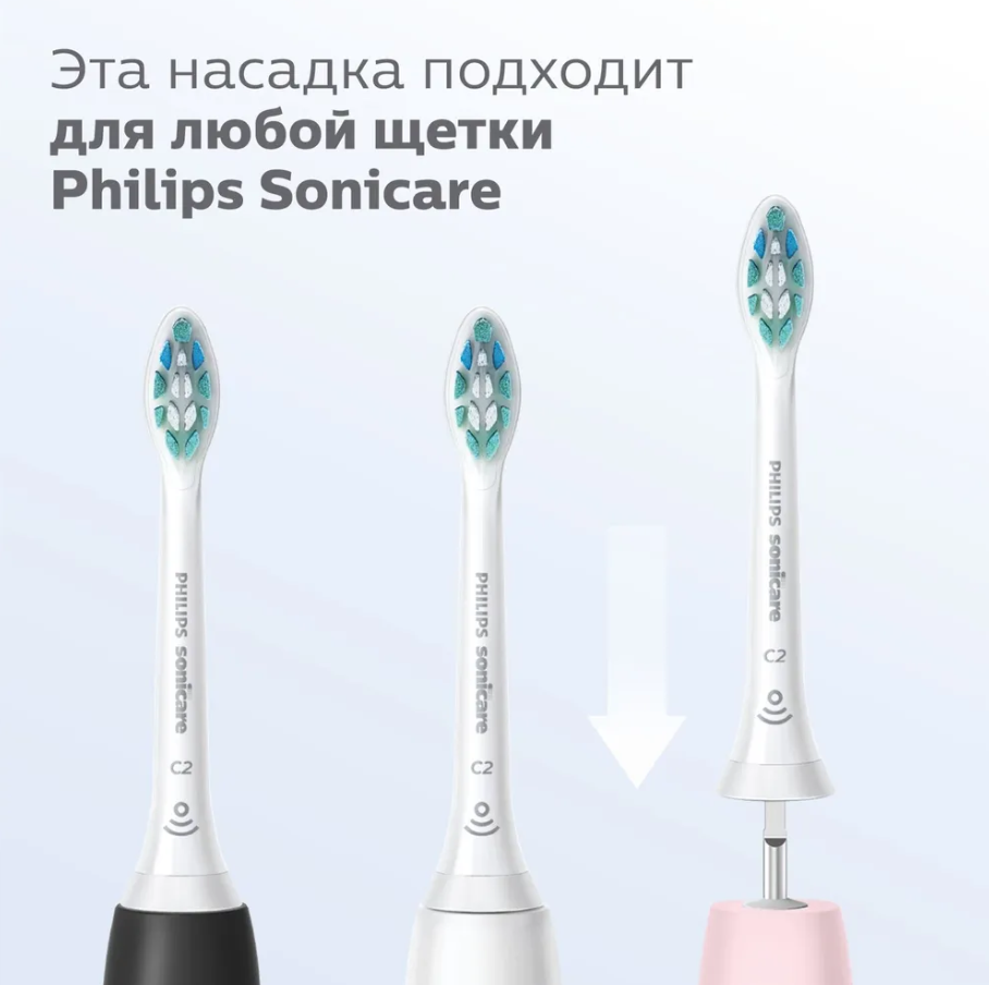 Насадки для электрической зубной щетки Philips Sonicare C2 HX9023/67, для оптимальной защиты от зубного налета, 3 шт