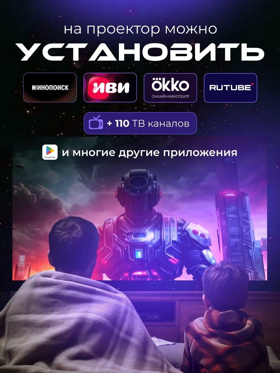 Проектор Frbby P30 PRO Full HD Android TV, Портативный проектор 5G, HDMI, Проектор мультимедийный Wi-Fi 1080p для дома, дачи, офиса, Черный 8 100 ₽