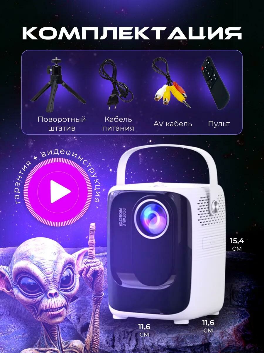 Мини проектор 4К с высоким разрешением 1920х1080 для фильмов и мультфильмов