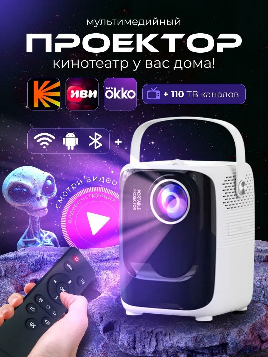 Портативный проектор Umiio U8 PRO Full HD Android TV 5G HDMI / Проектор мультимедийный Wi-Fi 1080 для офиса дома дачи белый 16 194 ₽