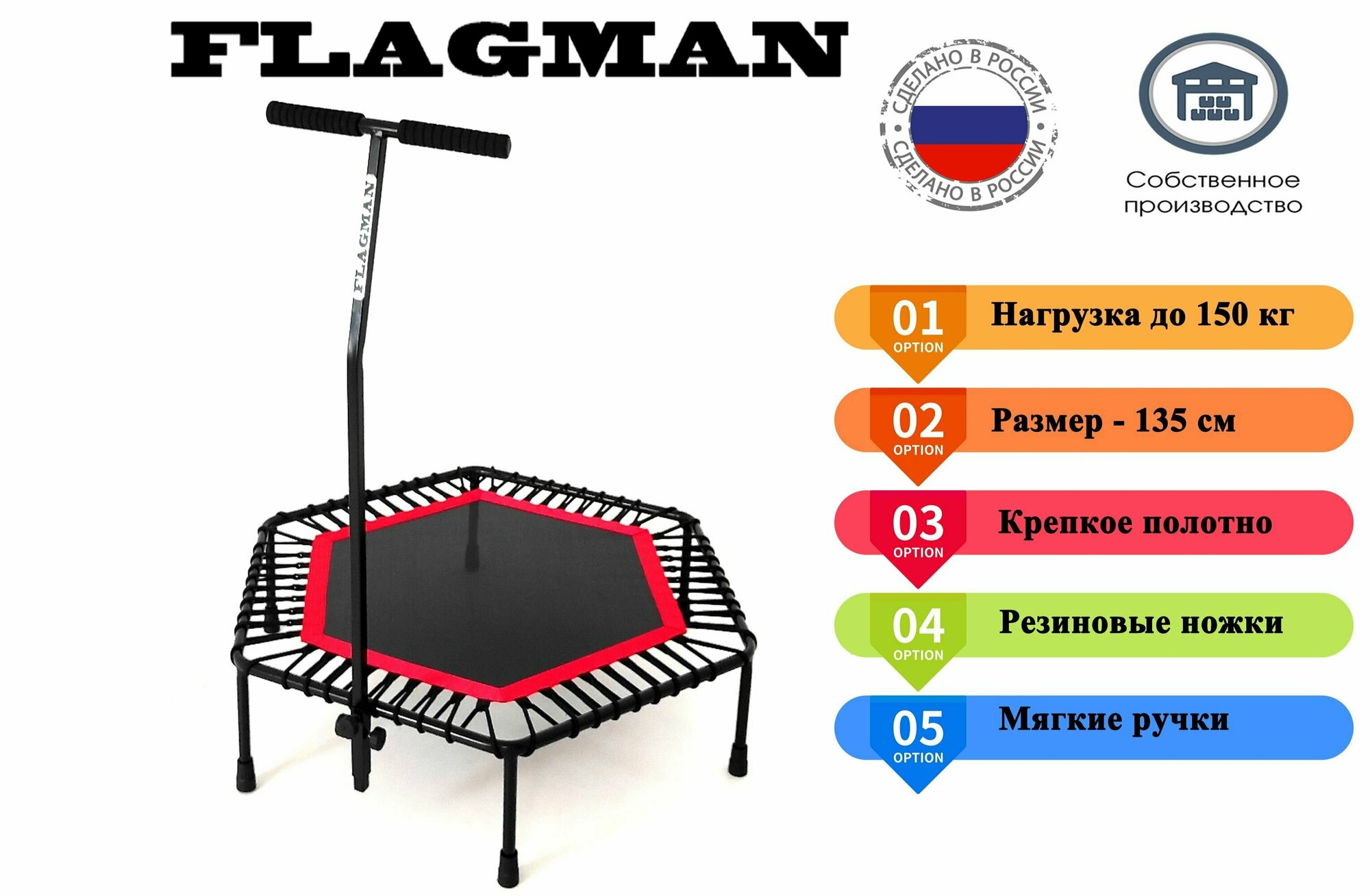Батут для фитнеса FLAGMAN 135см, с ручкой, максимальная нагрузка 150кг. Цвет красный информация: