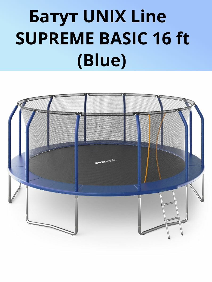 Батут UNIX Line SUPREME BASIC 16 ft (blue), диаметр 488 см, защитной сеткой высотой 170 см
