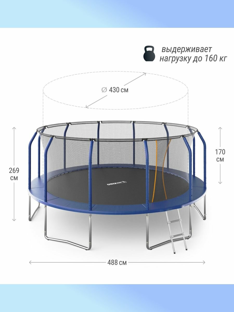 Батут UNIX Line Supreme Basic 16ft, синий, 488см, нагрузка до 200кг, с сеткой и лестницей информация: