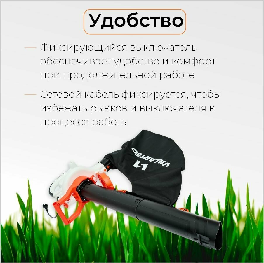 Воздуходувка VILLARTEC BE264, электрическая, 3-в-1, мощность 2600Вт, 720м³/час, белая/оранжевая информация: