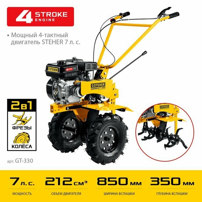 10 цен на STEHER 7 л. с, 212 см3, мотоблок бензиновый GT-330