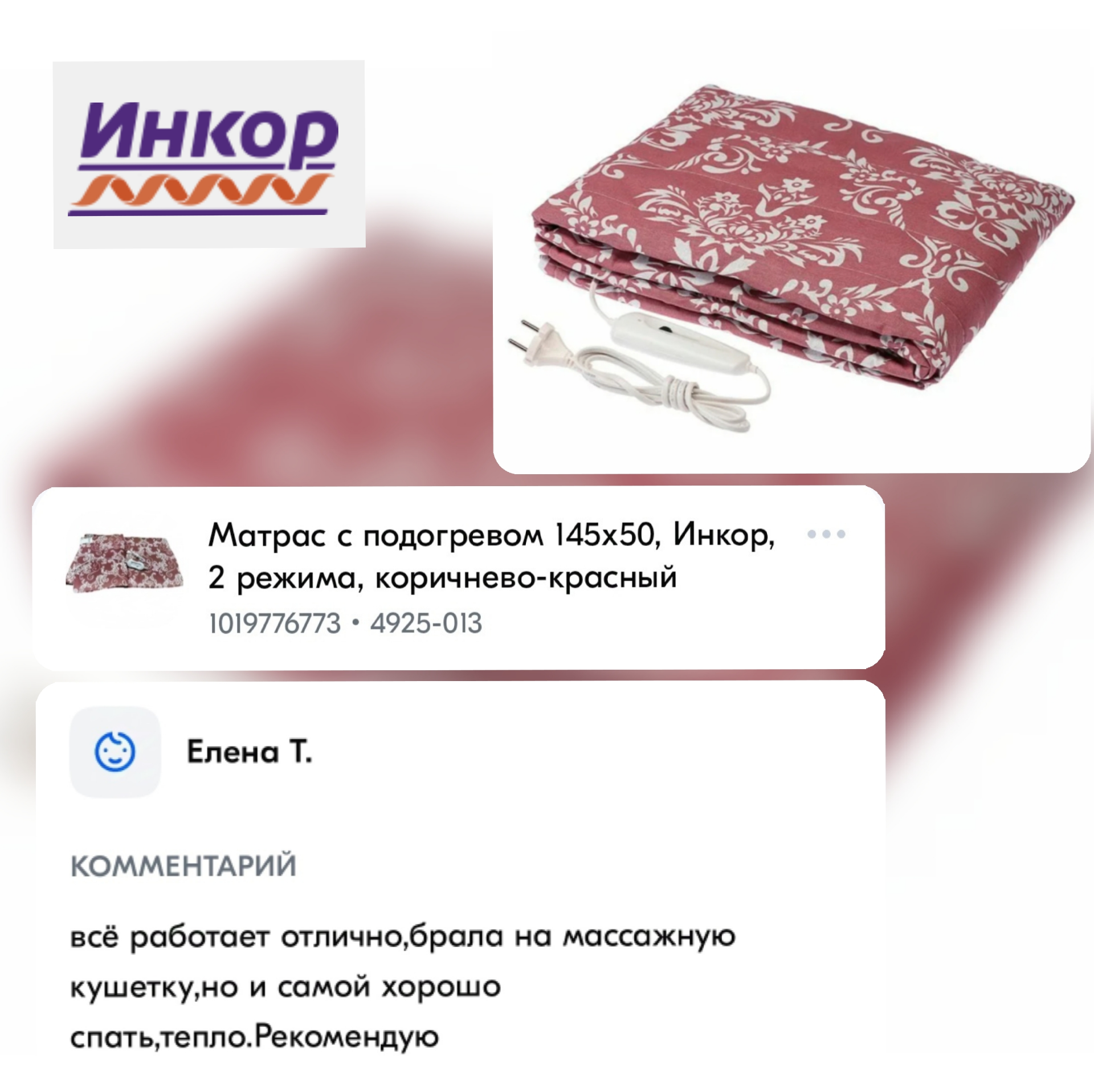 10 цен на Матрас с подогревом инфракрасный Инкор 50х145 розово-бардовый