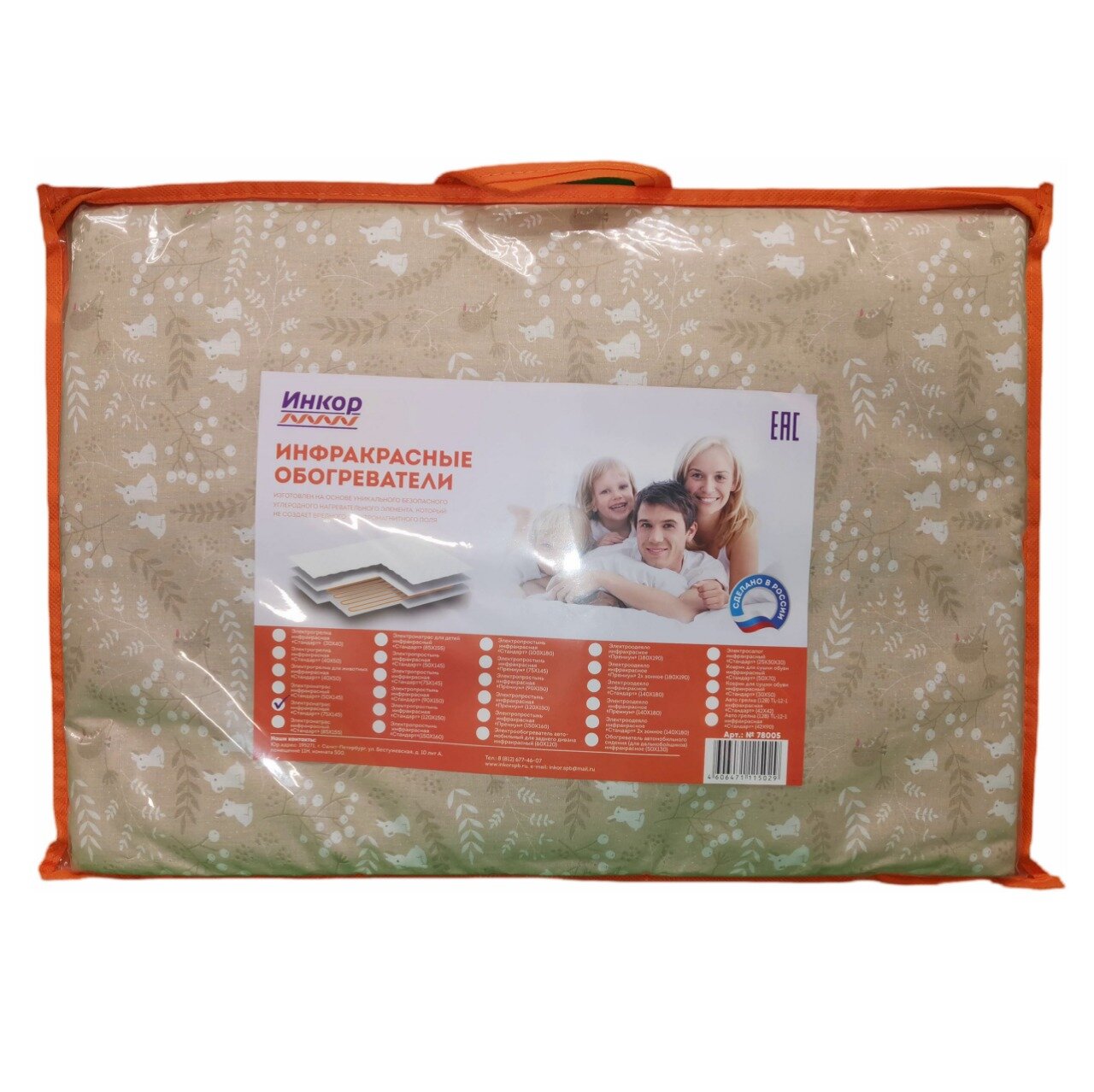 Матрас с подогревом инфракрасный Инкор 75х145 см бязь бежевый информация: