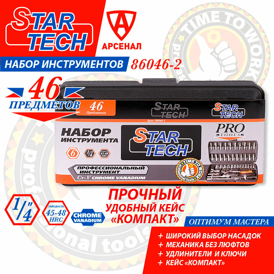 Набор инструмента STAR TECH 46 предметов 1/4" малый кейс, ST86046-2 информация: