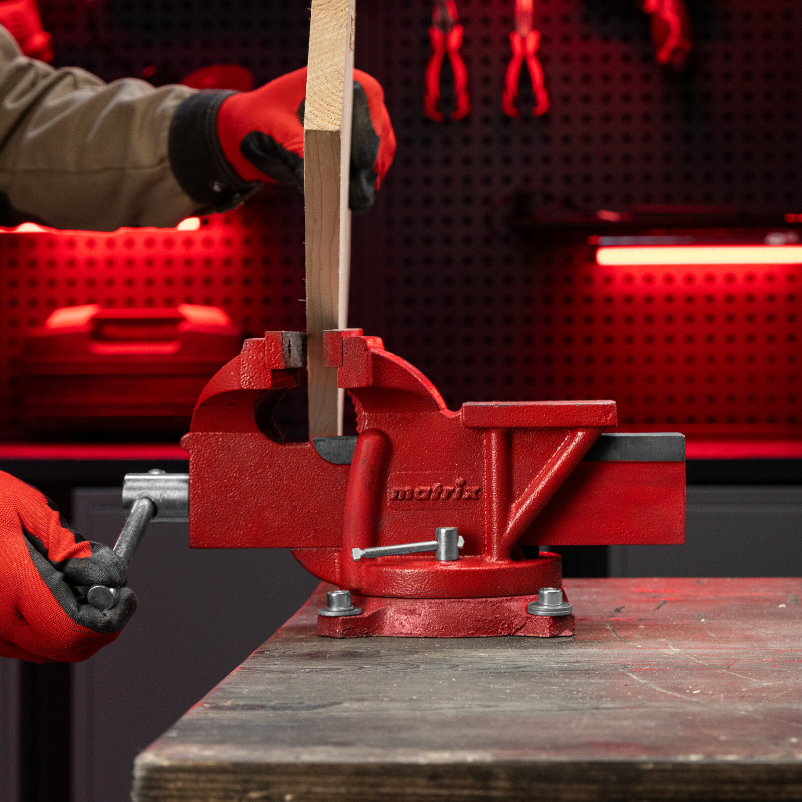 Отзывы на Тиски слесарные поворотные Matrix, 125 мм ширина губок и 115 мм рабочий ход, чугунный корпус, с наковальней, 18601