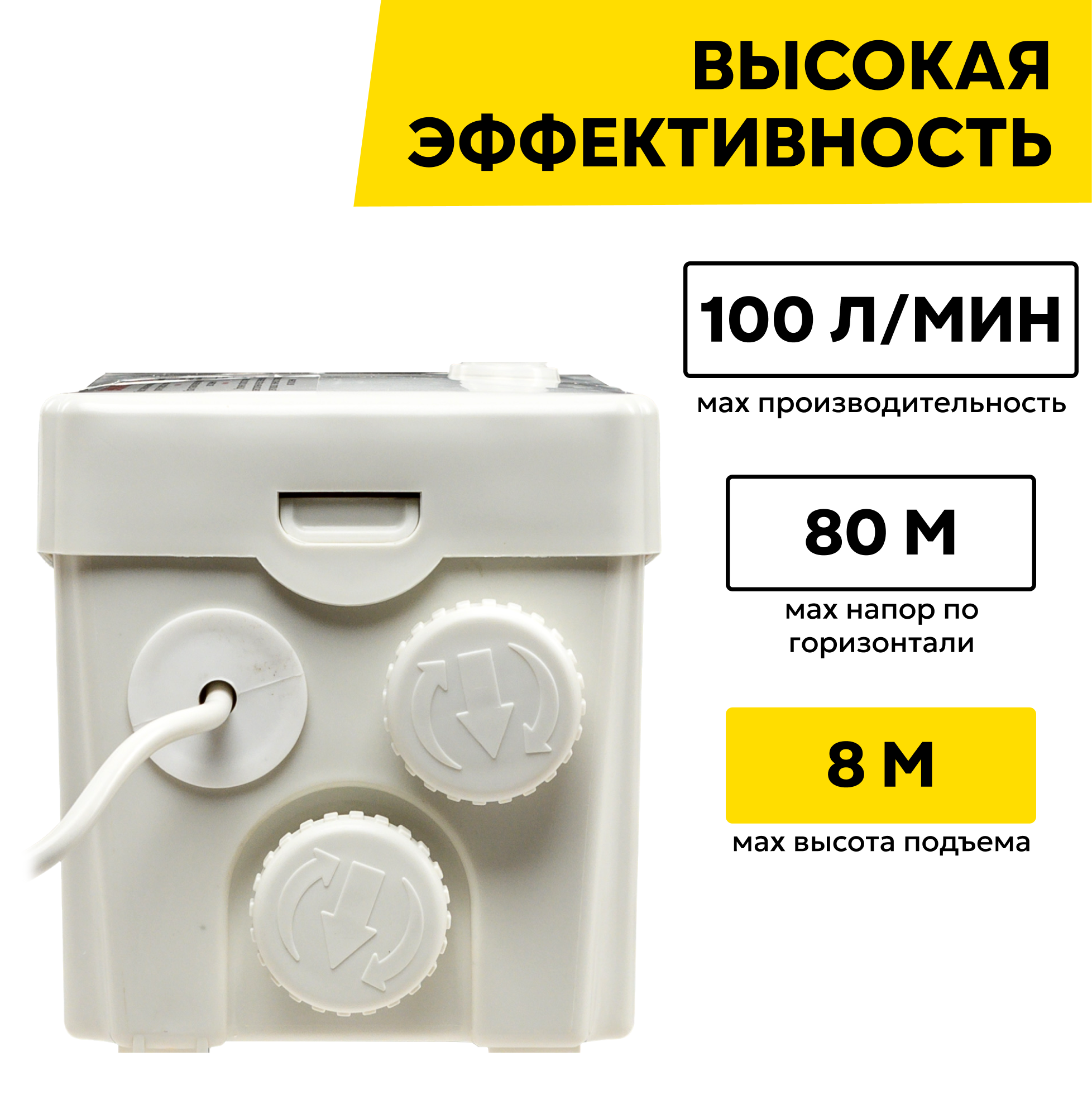 | Подробная комплектация | Канализационный насос 1 шт, выходной патрубок с обратным клапаном 1 шт, выходная муфта 2 шт, хомут металлический 4 шт |
